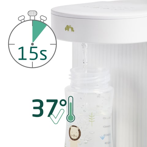 Deine Babyflasche ist in Sekunden mit der richtigen Temperatur zubereitet für einfache Flaschennahrung rund um die Uhr.