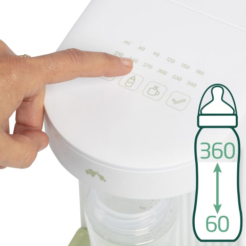 Ja! Du kannst das exakte, benötigte Volumen auswählen, typischerweise in 30 ml Schritten, um sich dem Alter und Nahrungsbedürfnissen deines Babys anzupassen.
