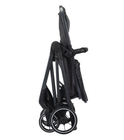 Im zusammengeklappten Zustand ist der Brume Trio kompakt und einfach zu tragen, wobei der Sitz am Kinderwagen befestigt bleiben kann.