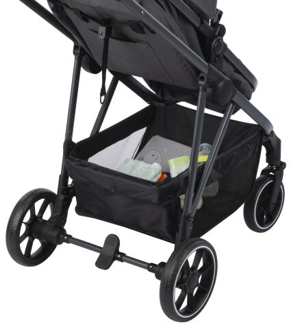 - Der einfach zugängliche Aufbewahrungskorb kann mit bis zu 3 kg Babysachen oder Einkäufe beladen werden.
