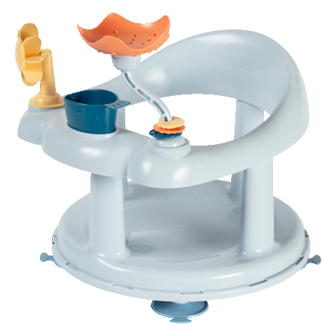 Das spannende Design des drehbaren Badesitzes mit 4 bezaubernden Spielzeugen bietet dem Baby viele Beschäftigungs- und Unterhaltungsmöglichkeiten während des Badens. Das Kleine kann mit der Fischtasse und dem Seesternsieb das Wasser schaufeln und mit dem Sonnenwasserrad und den Muschelringen herumplanschen. Außerdem ist der Sitz mit einer stützenden ergonomischen Rückenlehne und einer rutschfesten Sitzfläche ausgestattet, die dem Baby optimalen Komfort bieten.